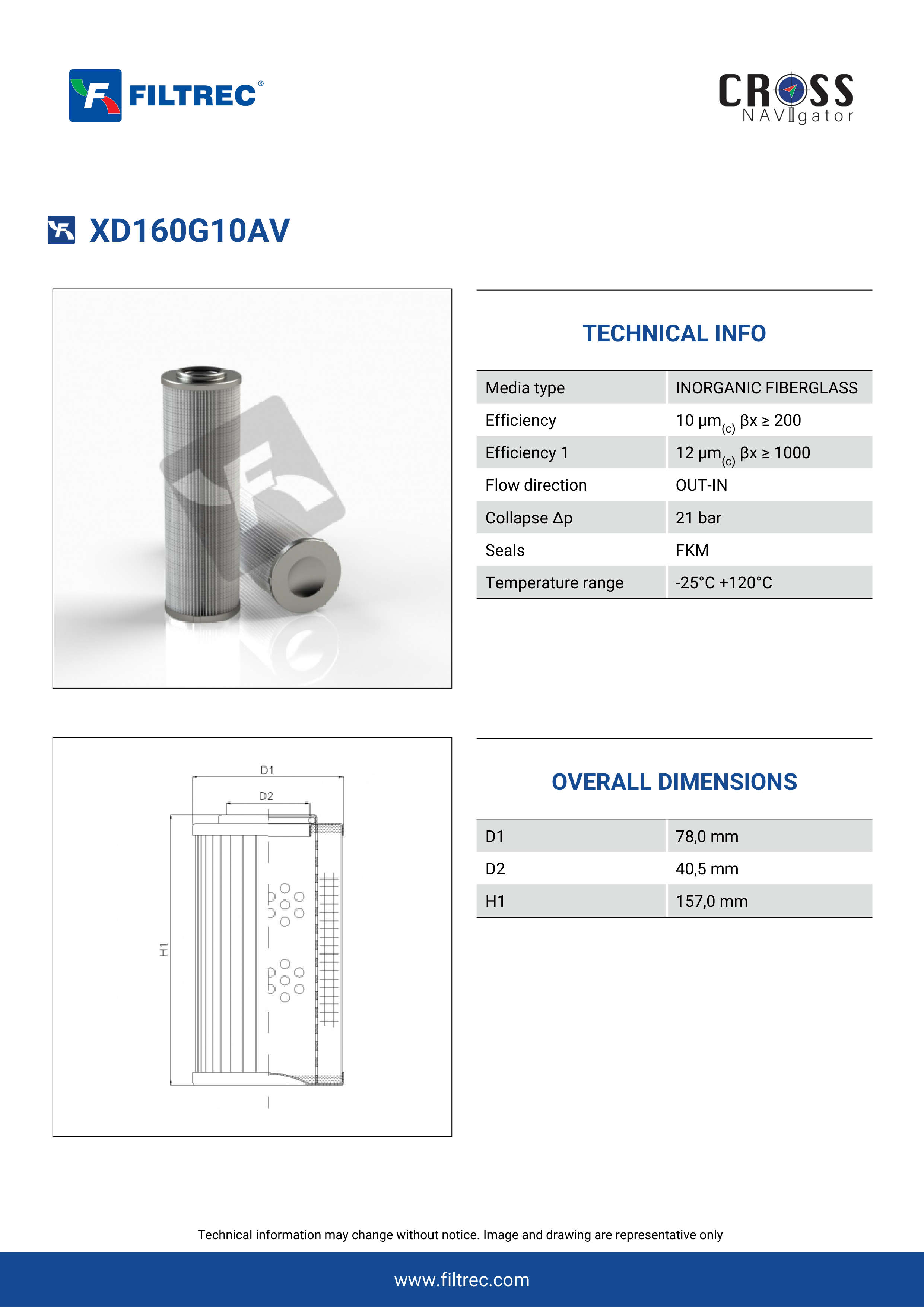 Genuine Filtrec XD160G10AV. This Filtrec element is designed to meet or exceed the quality and performance of brand OEM’s ensuring superior filtration performance and long-lasting durability.