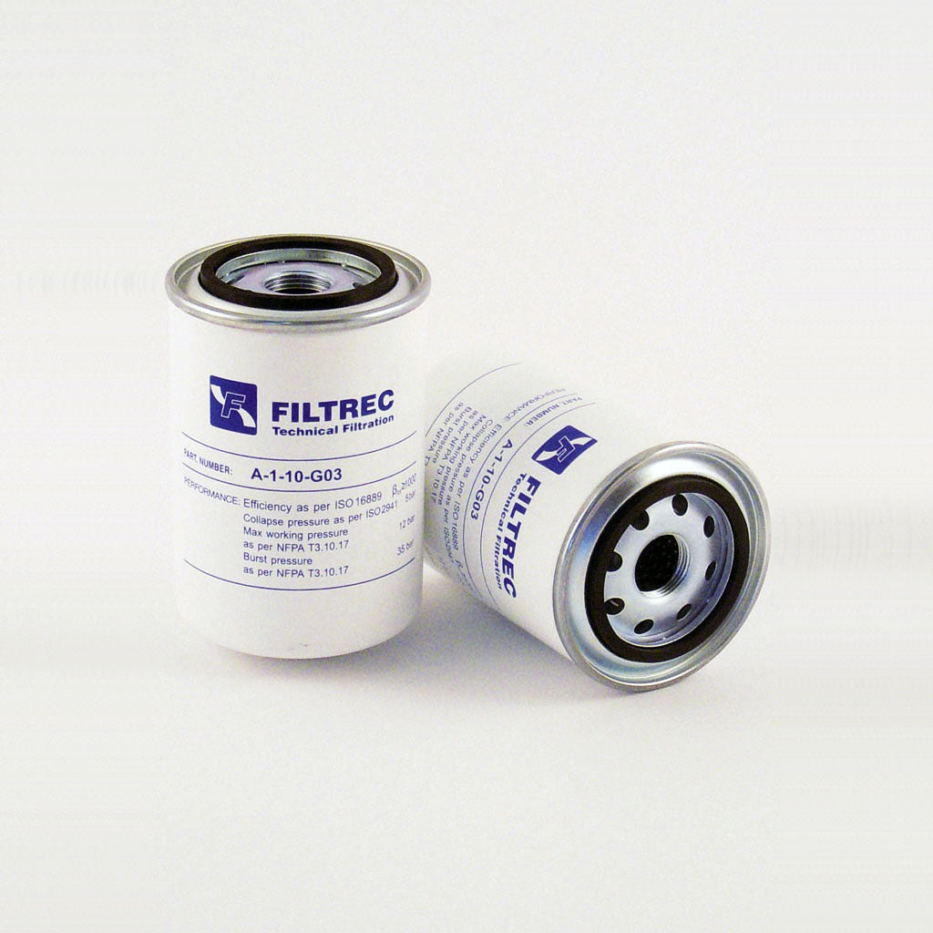 The efficiency of the element is shown using the Micron (µ) and Beta (β) ratings. The micron rating indicates the size of the particle being filtered and the beta rating the efficiency, calculated as 1/β.