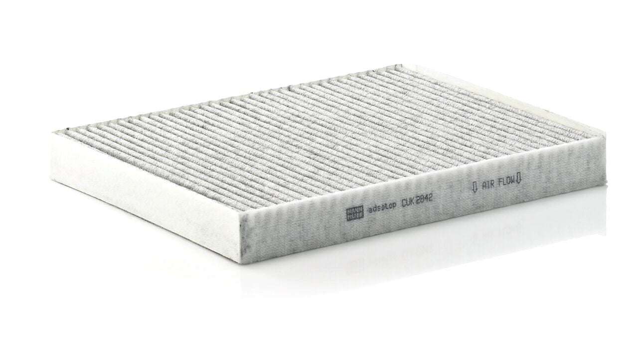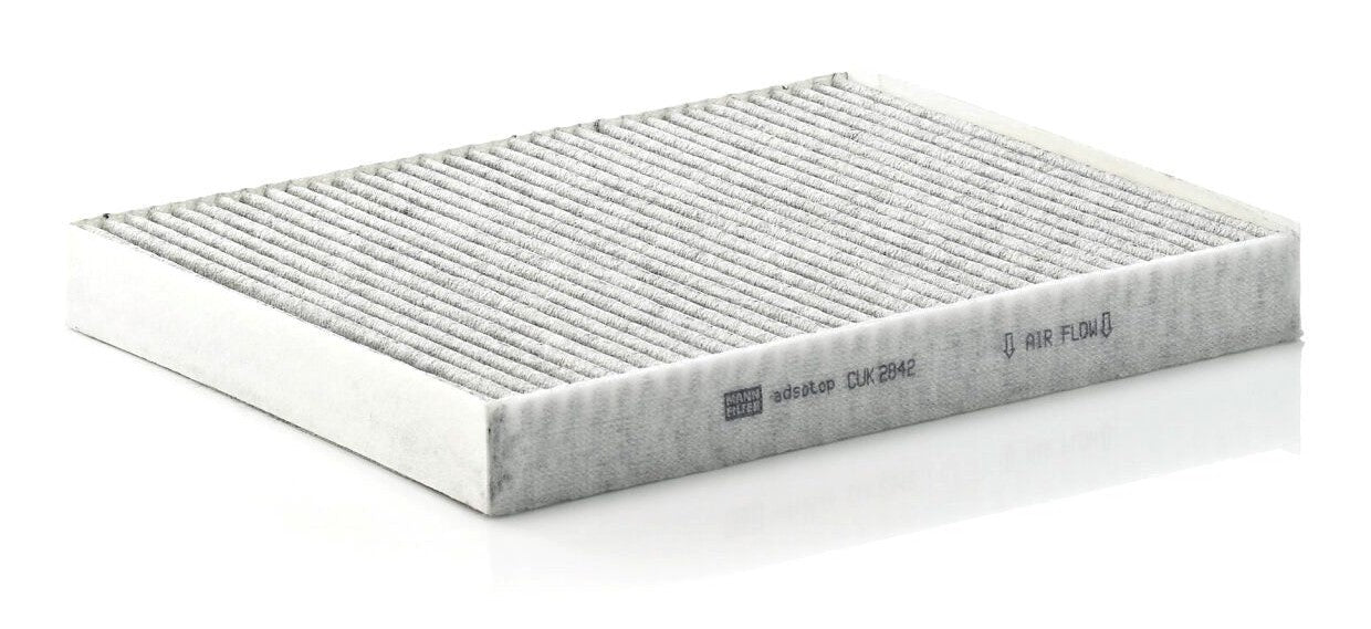 High-quality MANN-FILTER cabin filters with active carbon - nearly 100% protection from particles like pollen, diesel soot & tyre abrasion / Additional protection from harmful gases & unpleasant odour. The trated highly-effective activated carbon gives protection against harmful gases such as ozone, nitrogen oxide or sulphur dioxide and eliminates unpleasant odours during the entire service interval.
