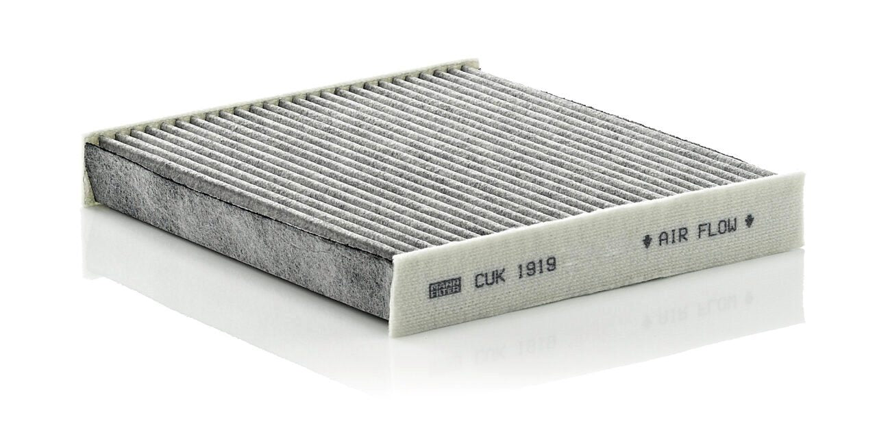 High-quality MANN-FILTER cabin filters with active carbon - nearly 100% protection from particles like pollen, diesel soot & tyre abrasion / Additional protection from harmful gases & unpleasant odour. The trated highly-effective activated carbon gives protection against harmful gases such as ozone, nitrogen oxide or sulphur dioxide and eliminates unpleasant odours during the entire service interval.