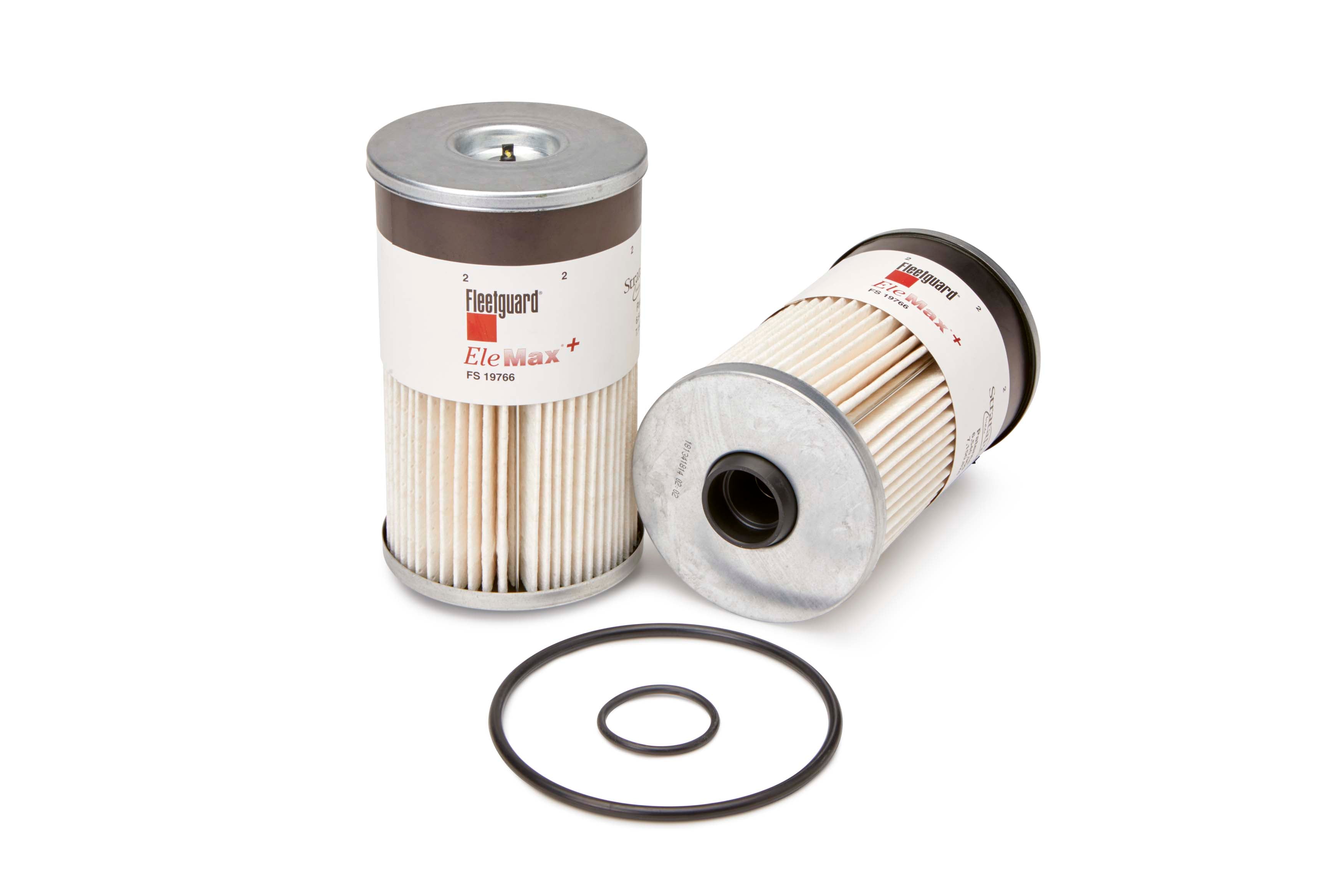 Fleetguard® FS19766 plus size EleMax™ fuel filter protects vital fuel system components. Its patented control valve provides full use of the filter, fits Fuel Pro® and many Diesel Pro® models, has multiple micron ratings for OEM compliance, and is biodiesel compatible.Specification