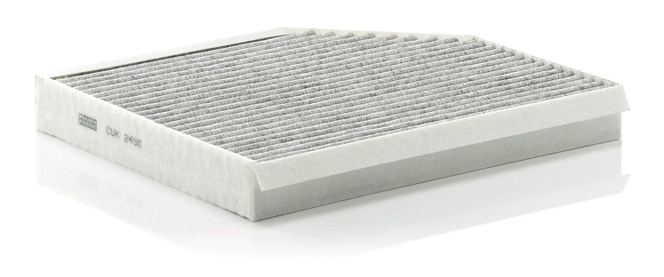 High-quality MANN-FILTER cabin filters with active carbon - nearly 100% protection from particles like pollen, diesel soot & tyre abrasion / Additional protection from harmful gases & unpleasant odour. The trated highly-effective activated carbon gives protection against harmful gases such as ozone, nitrogen oxide or sulphur dioxide and eliminates unpleasant odours during the entire service interval.